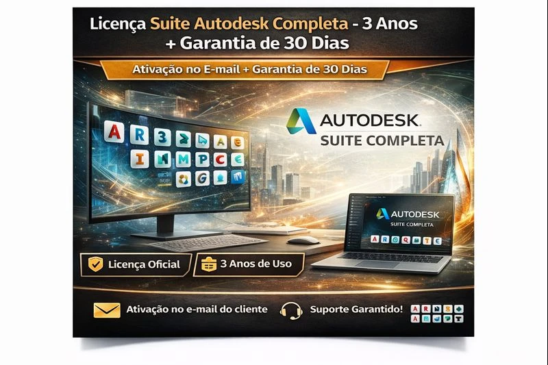 Após a compra, o acesso será disponibilizado no e-mail do cliente, permitindo o uso dos aplicativos conforme as condições da assinatura. O cliente utilizará os softwares por meio de conta Autodesk vinculada ao e-mail informado.