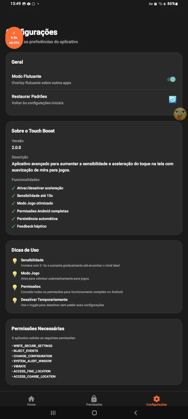 • ⚡ Aumenta a resposta do toque