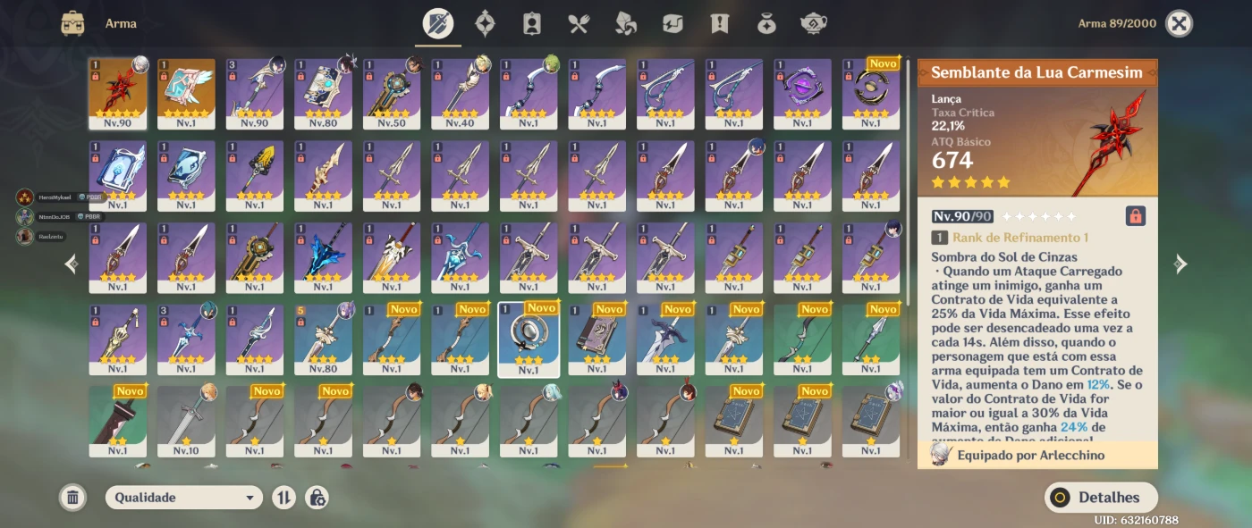 Conta de Genshin Arlecchino C2 Arma Assinatura, Columbina.