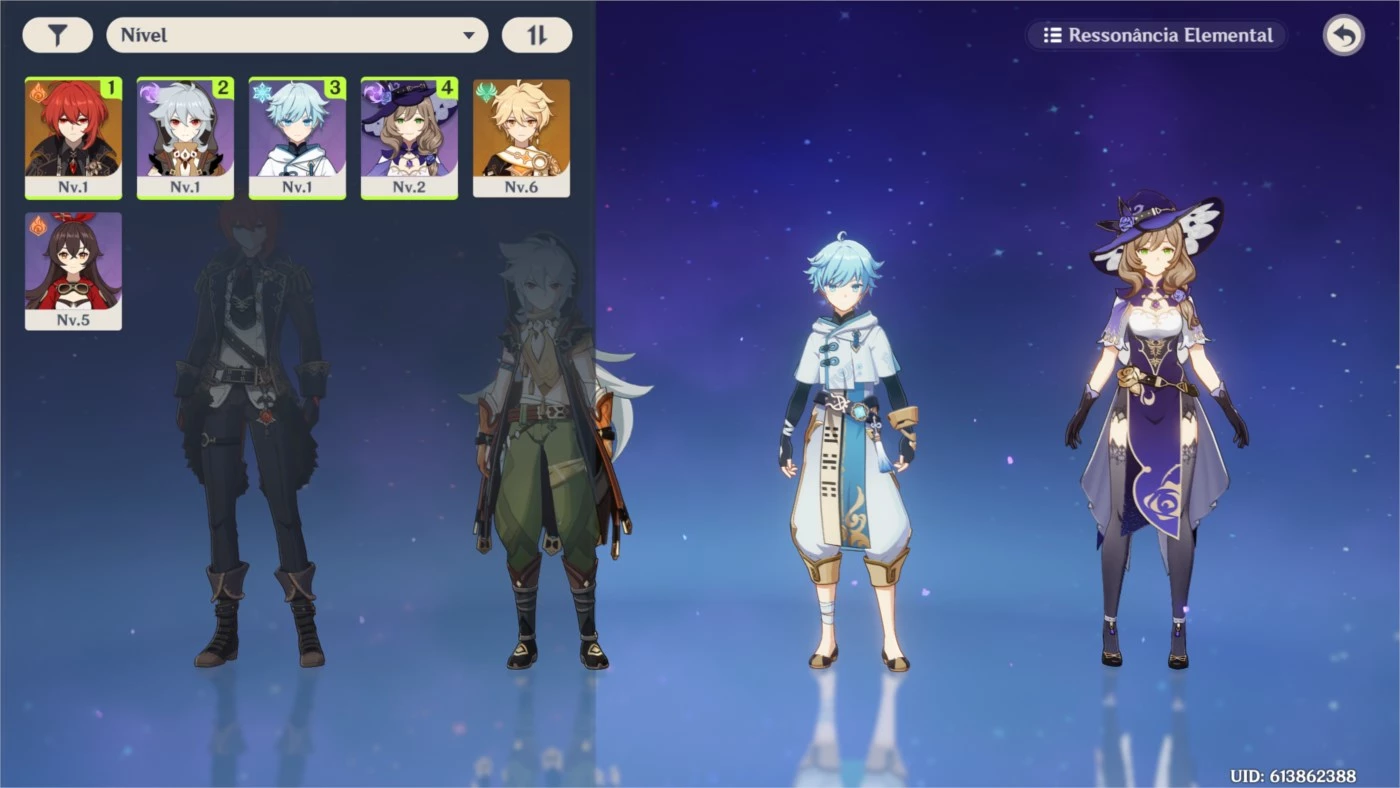 Conta possui os seguintes personagens: