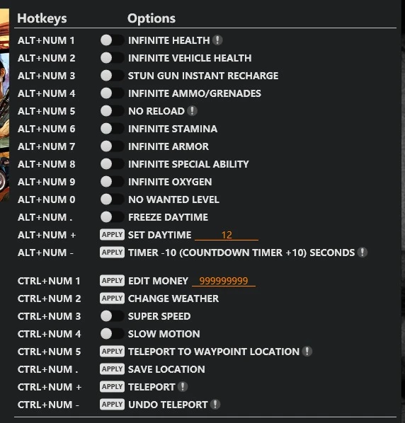 🔥 Painel GTA 5 – Funções Disponíveis (Modo História)