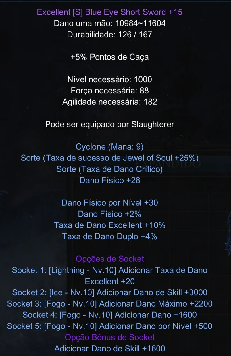 1 ARMA BLUE EYE SOCKET DE SLAYER FULL OPTION +15
