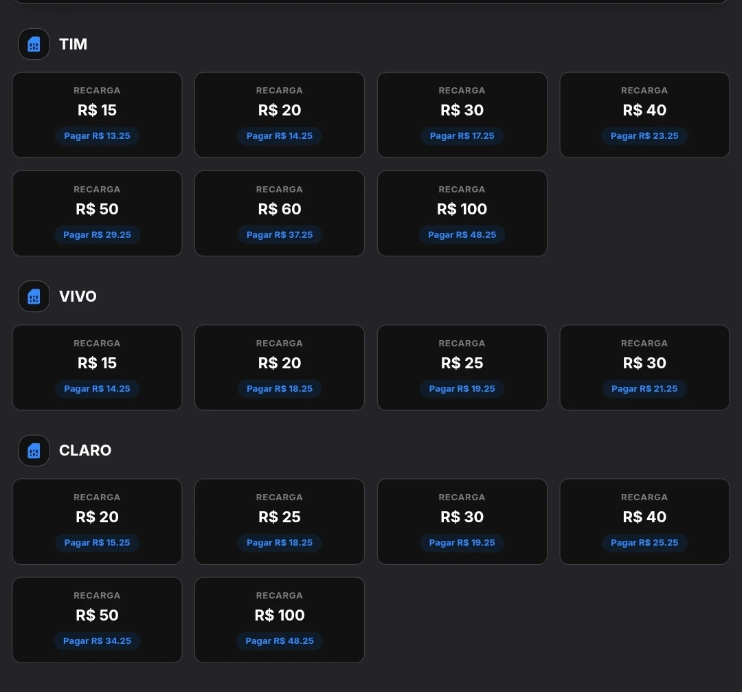 🌐 💳 Recargas Online — Vivo ,Tim & Claro