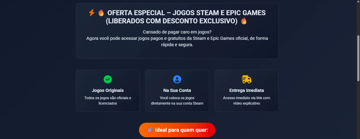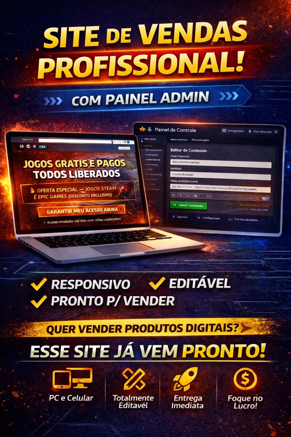 site profissional estilo página de vendas (landing page), totalmente pronto para uso, ideal para quem quer vender produtos digitais, acessos, jogos, serviços ou qualquer oferta online.