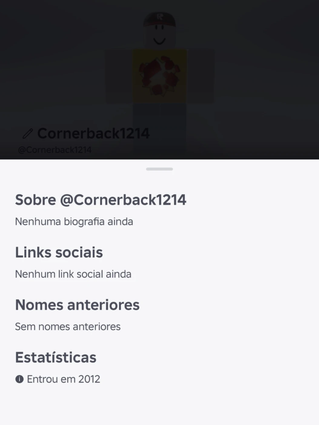 Uma conta antiga de Roblox do ano de 2012
