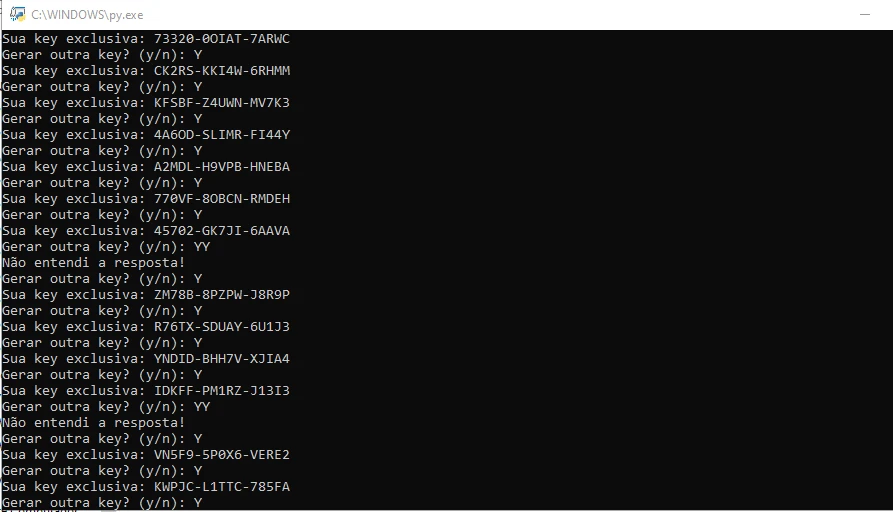 OBS: NEM TODAS AS CHAVES IRÃO FUNCIONAR, VOCÊ TERA QUE GERAR VARIAS, PRA TER UMA % BOA DE CHANCE DELAS FUNCIONAR :)